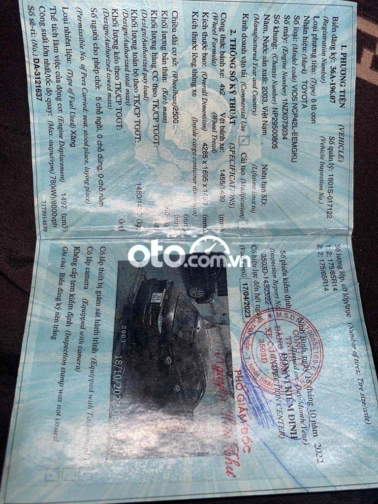 Thông tin bán xe Toyota Vios 2003 đang được rao bán tại bantoyota.net. Quý khách hàng vui lòng tìm hiểu thêm các thông tin cụ thể dưới đây: