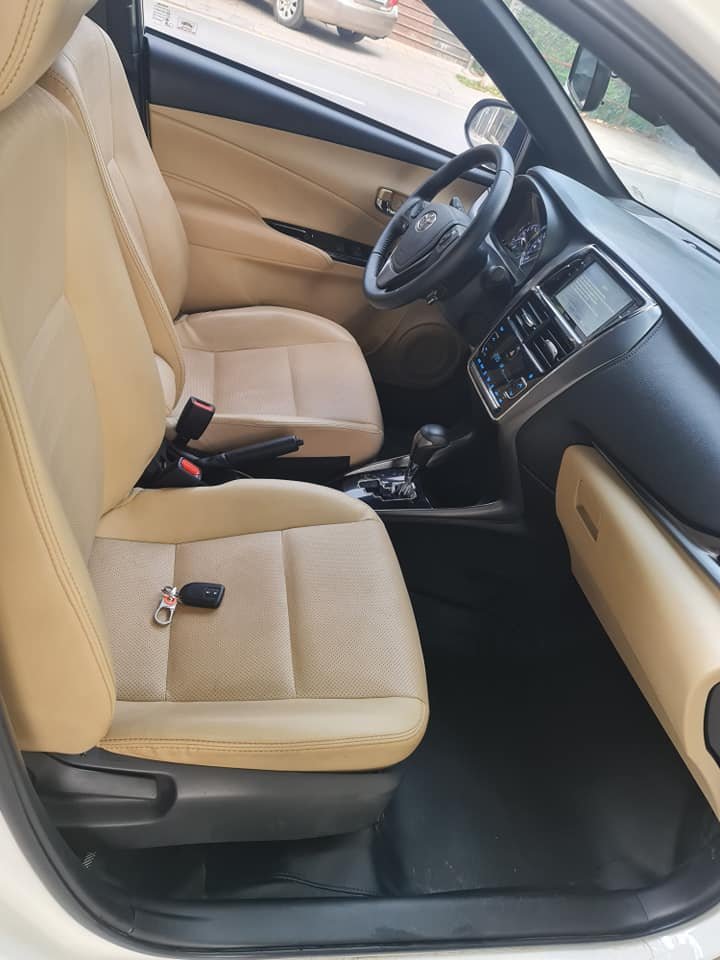 Em bán Yaris 2022, sản xuất 2021 1.5 AT nhập khẩu Thái Lan. Màu trắng, nội thất màu kem.